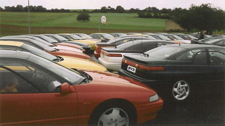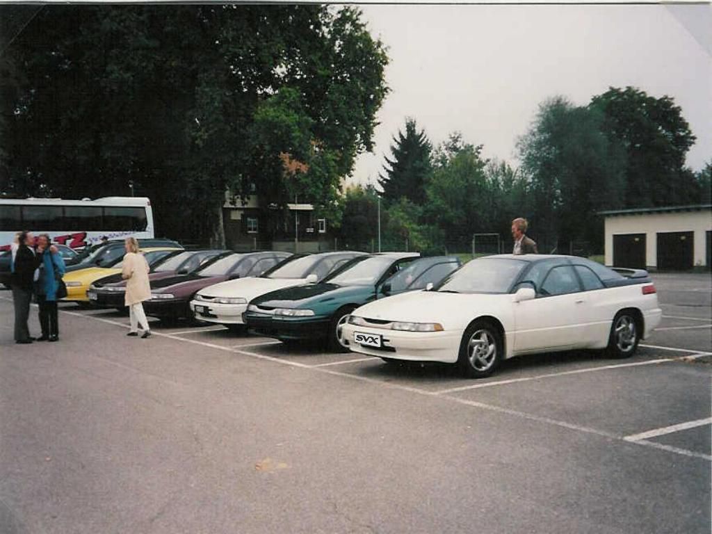 Okt. 1998. Das Treffen findet bei Subaru in Friedberg statt. Es sind auch viele Gäste dabei. Über 30 SVX. Es war schwierig, alle Autos auf ein Bild zu bekommen.